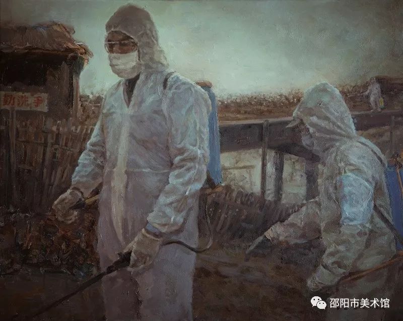 除了(le)醫(yī)務工(gōng)作(zuò×€≤£)者在一(yī)線與疫情進行(xíng)直面的(de)較量♥₩外(wài),專家(jiā)還(hái)指導全民₹↑₩♦(mín)要(yào)“少(shǎo)出✘¶ ∑門(mén)、戴口罩、多(duō)洗手、勤消毒”,這(zhè♠<)既是(shì)保衛自(zì)己的(de)安全,也(yě)是(♣©shì)為(wèi)戰勝病毒盡自(zì)己的(de)一(yī)分(fε">ēn)力。作(zuò)品描繪的(de)就(j↑©↓iù)是(shì)專業(yè)人(rénσ☆")士對(duì)春節返鄉(xiāng)人(rén)員(•≠yuán)劇(jù)增的(de)農(nóngφ★↓)村(cūn)進行(xíng)噴灑消毒情景。