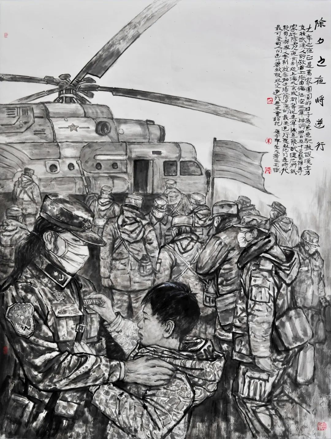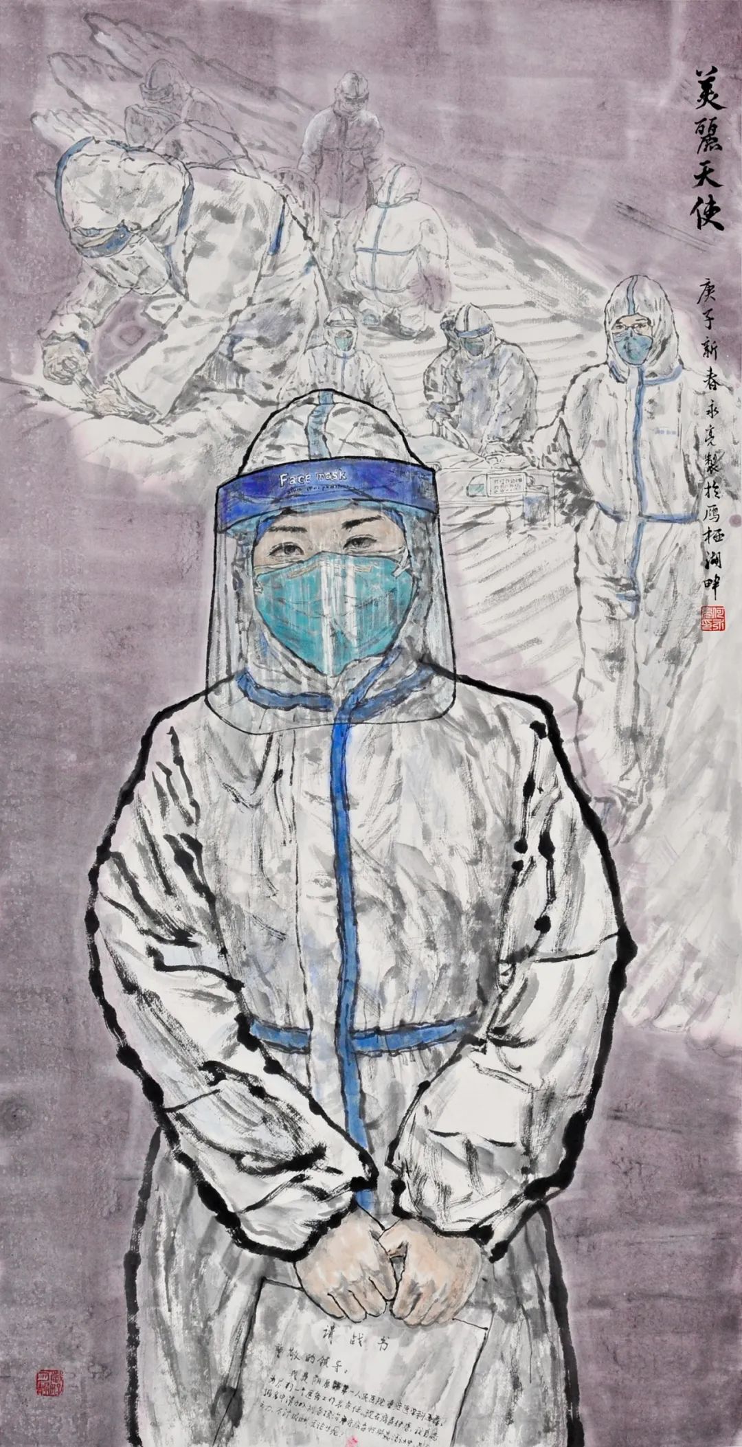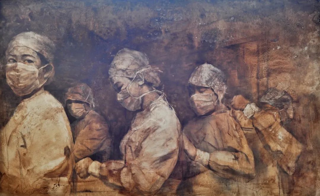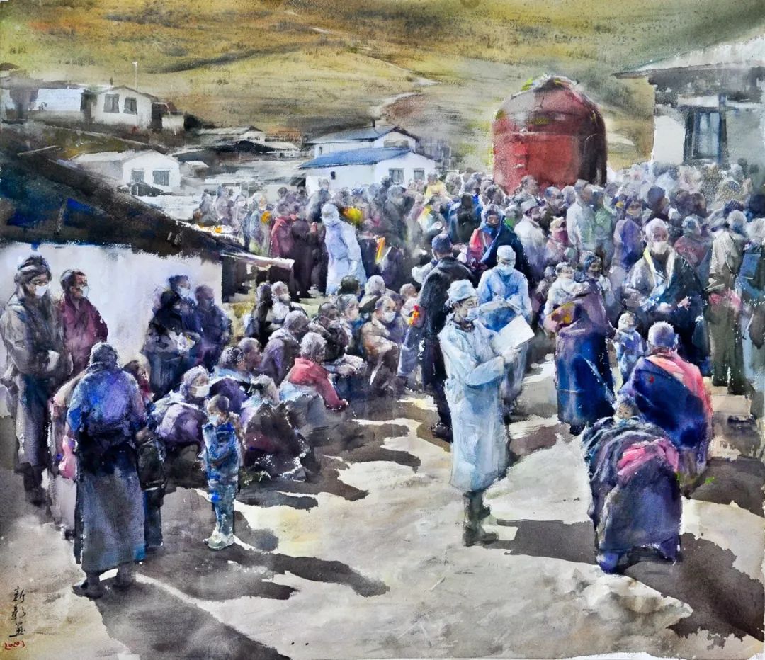 《抗疫一(yī)線》蔣劍平 120cm×100cm $&♠水(shuǐ)彩