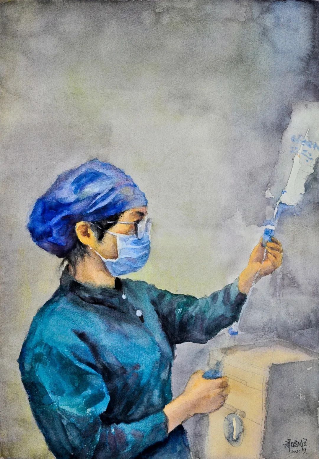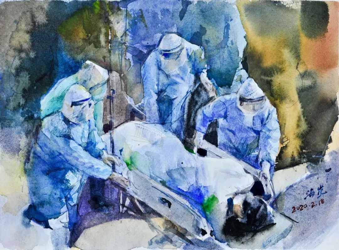 《抗疫一(yī)線》海(hǎi)岚 31cm×23cm 水(s•↕>☆huǐ)彩