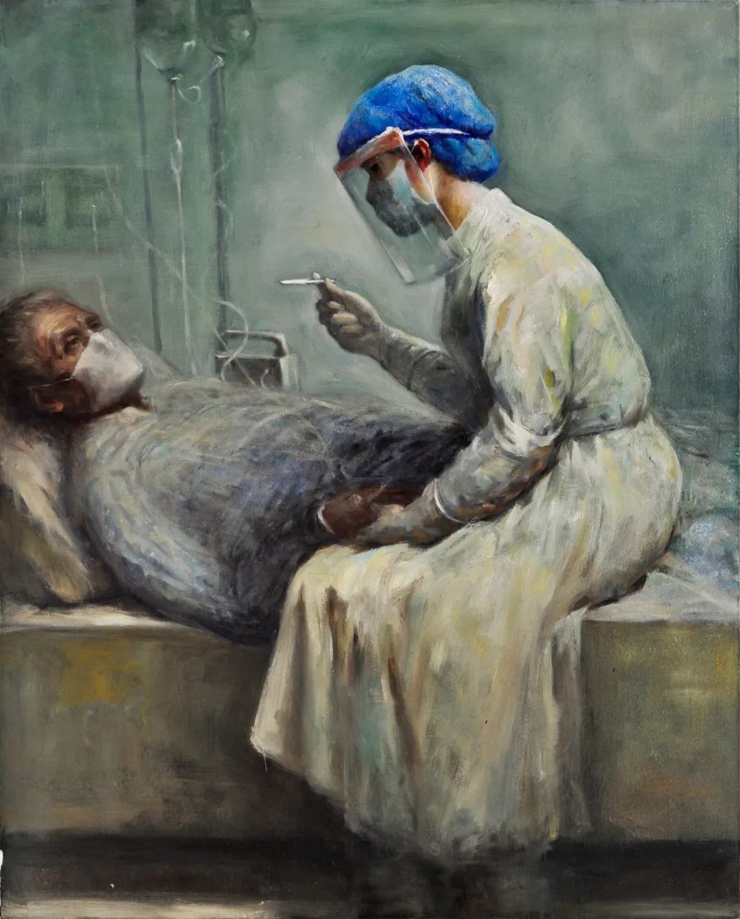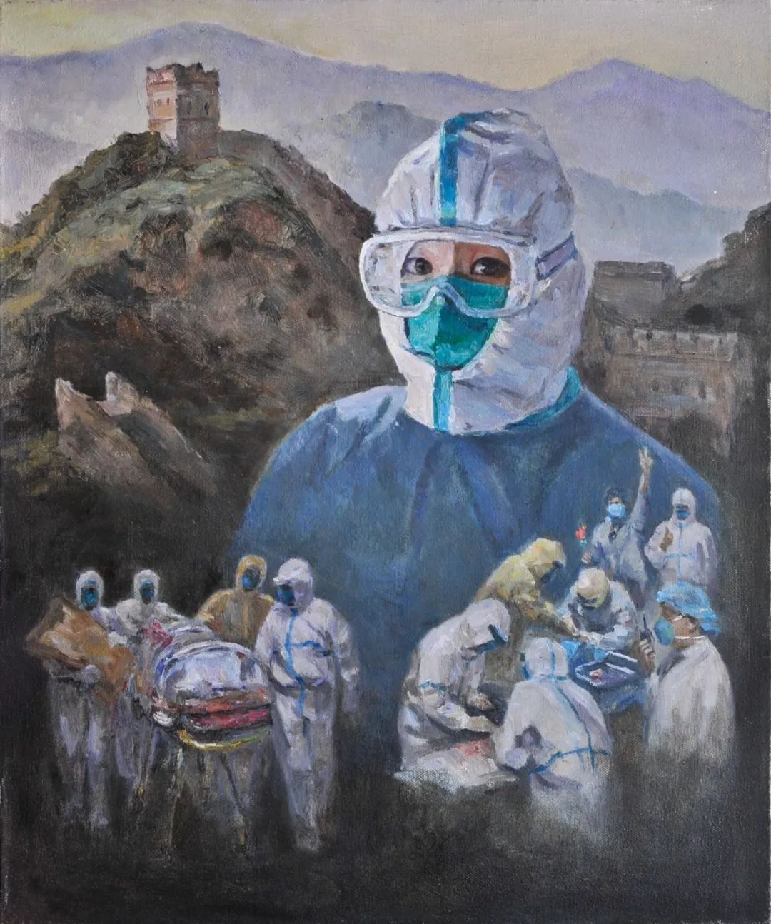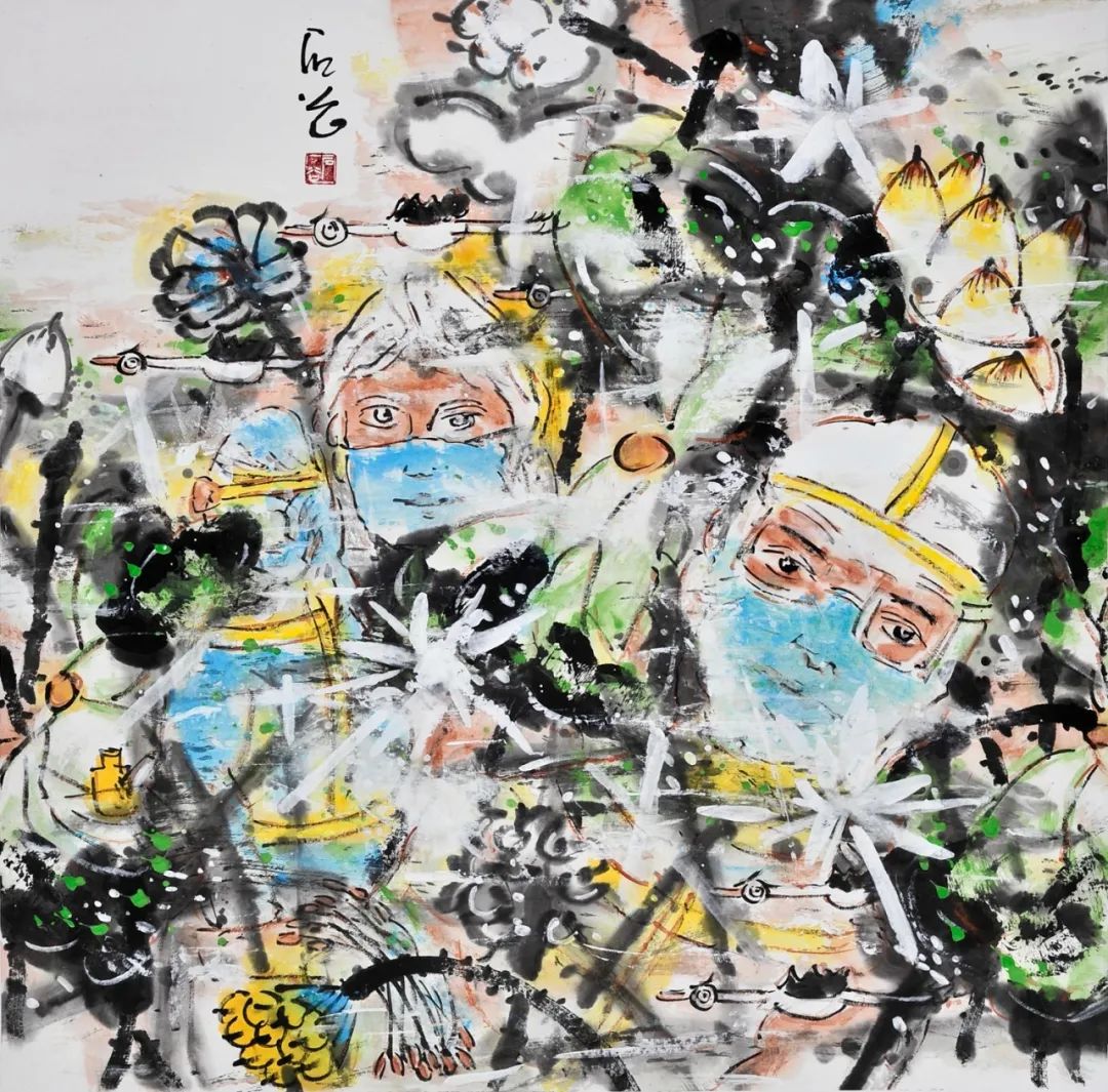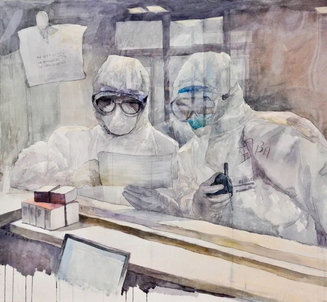 《抗疫一(yī)線》蔣劍平 120cm×100cm $&♠水(shuǐ)彩