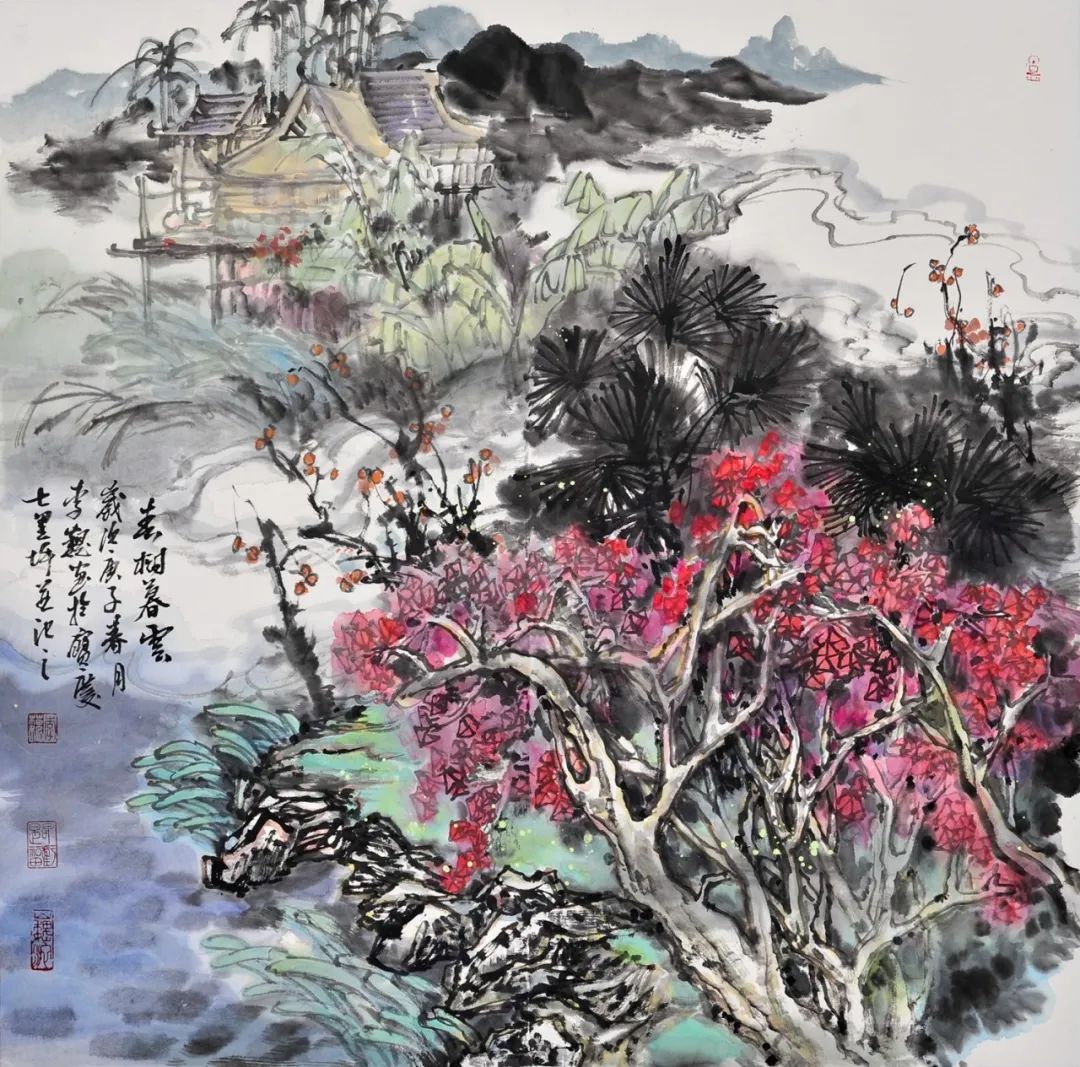 《春樹(shù)暮雲》李巍 68cm×68cm 國(guó)畫(huà)
